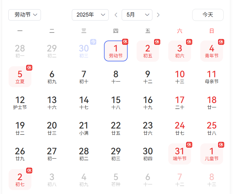 根據(jù)國家法定節(jié)假日安排,結(jié)合公司實(shí)際情況,現(xiàn)將長沙思辰儀器2025年五一勞動(dòng)節(jié)放假安排通知如下: